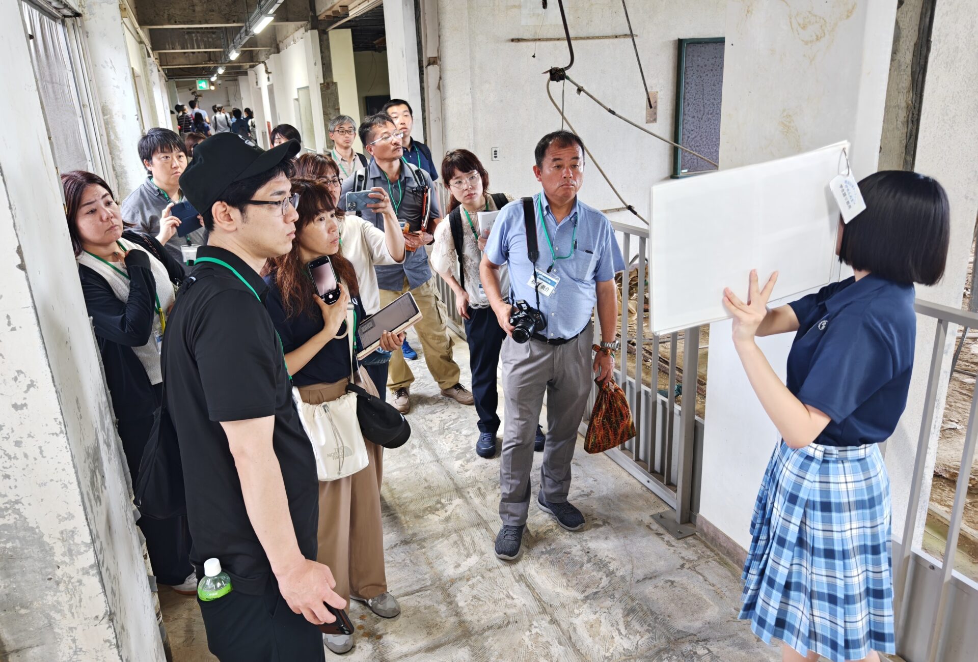 ・校舎4階まで津波に襲われた旧高校校舎の遺構を高校生ガイドの案内で視察